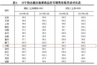 通过2月24日国家统计局公布的2018年1月份70个大中城市商品住宅销售价格变动情况显示,济南1月份新建商品住宅销售价格环比上月增长0.5%,继去年四连跌之后,连续第二个月上涨。
