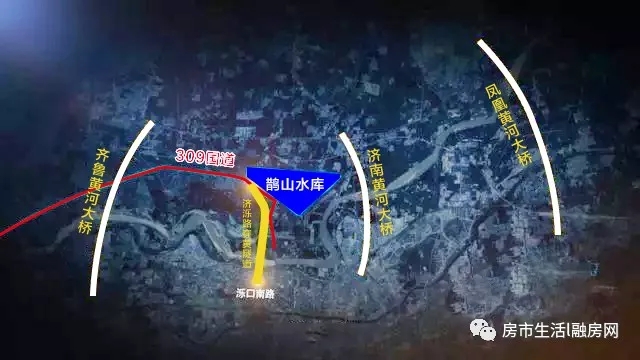 齐鲁黄河大桥采用一级公路标准,双向八车道,主桥范围为公轨合建的桥梁形式,中间预留城市轨道交通空间,兼顾城市主干路功能。主线设一对匝道与G309连通,并预留远期向北延伸条件。按照计划,齐鲁黄河大桥预计在2021年6月通车。