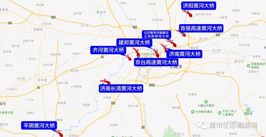 黄河济南段上已经架起了9座跨黄公路桥,其中平阴黄河大桥、济南黄河大桥完全免费,齐河黄河大桥、建邦黄河大桥对本地人免费。“三桥一隧”通车之后,济南将形成“十二桥一隧”的北跨格局,济南城区向东、中、西部都有不止一条通道可以过河,济南也从“大明湖时代”跨向“黄河时代”,“三桥一隧”建成后将大大缩短市民的通行时间,提升北跨速度,助力黄河以北新城的建设与发展。